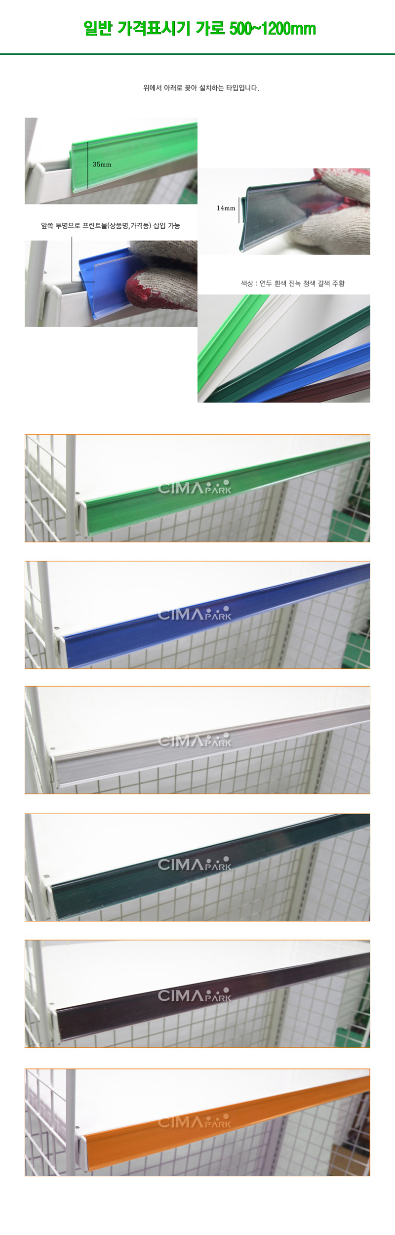 본 제품은 끼움형태의 가격표시기(라벨홀더)로 선반앞쪽에 끼워서 설치 가능합니다.